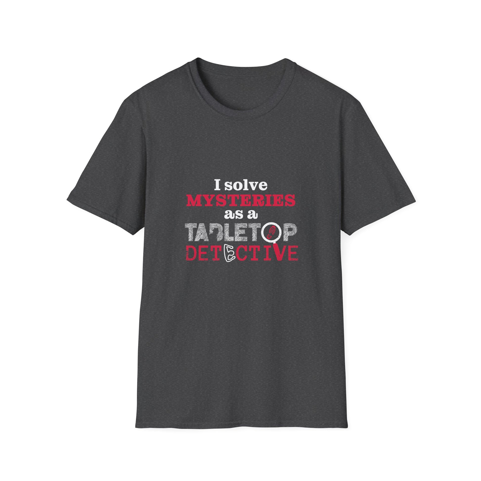 Show off your mystery-solving prowess with this cotton t-shirt declaring "I solve mysteries as a Tabletop Detective". Whether you celebrate Mystery Monday, Whodunnit Wednesday, or Forensics Friday—or simply get together with friends for the occasional mystery night—make sure you dress the part.